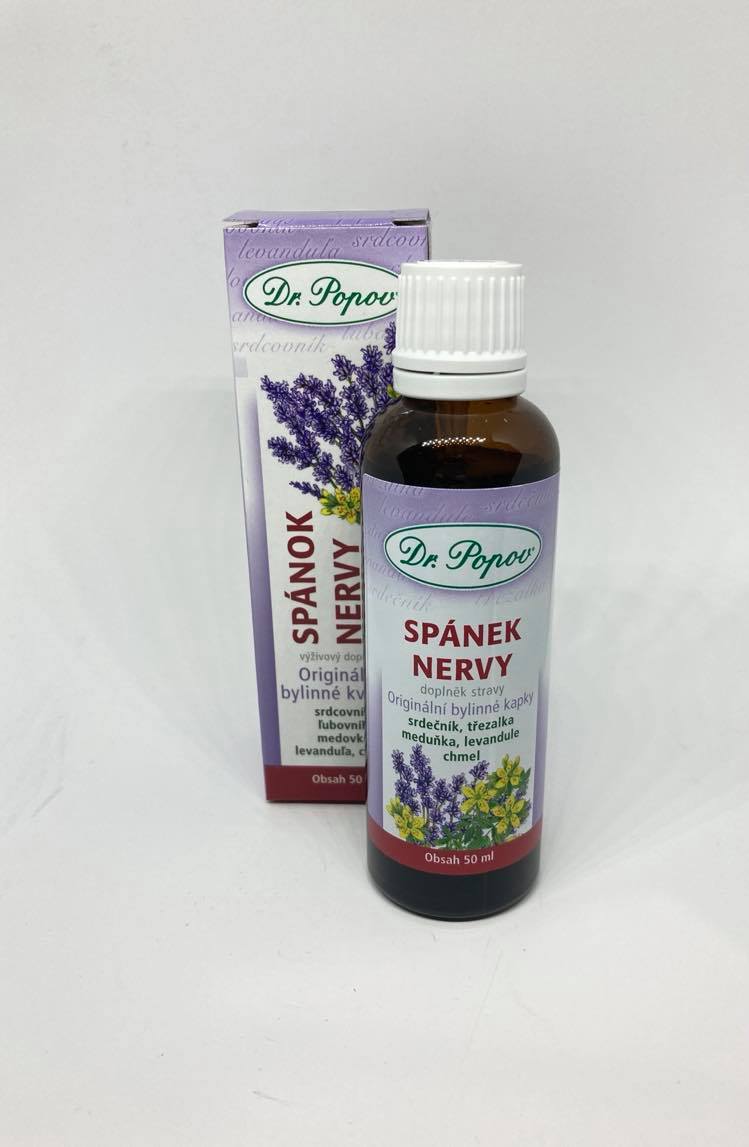 Originálne bylinné kvapky Dr. Popova  Spánok – nervy  obsahujú 5 tradične používaných bylín, ktoré sú známe pre svoje výborné relaxačné a upokojujúce účinky.