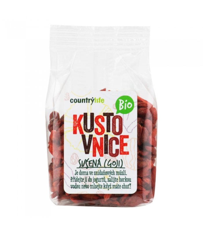 Sušené plody kustovnice cudzej* (Lyciu barbarum). Môže obsahovať stopy lepku, arašidov, sóje, orechových plodov a sezamu. *produkt kontrolovaného ekologického poľnohospodárstva.